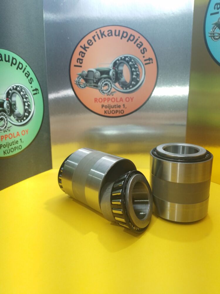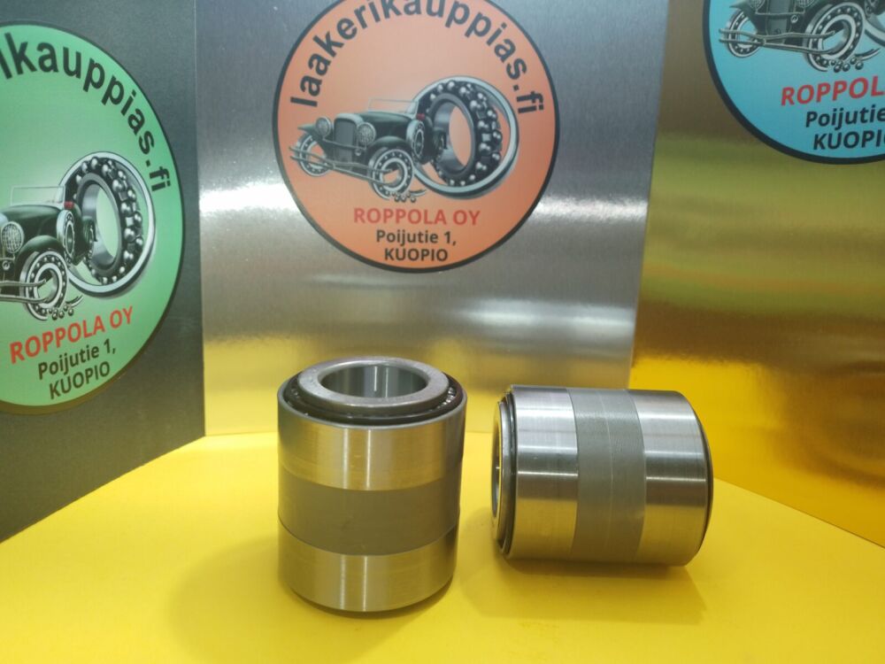 VASTAKKAIN ASETETUT KARTIORULLALAAKERIT SAMASSA RUNKOPUTKESSA, AKSELIMITTA 32MM, ULKOMITTA 58MM, LEVEYS 65MM,(hyllypaikka 32 punainen)